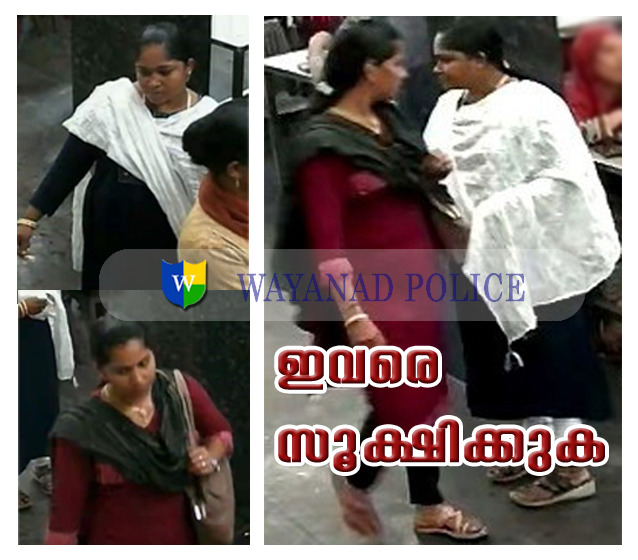 ഇവരെ ശ്രദ്ധിക്കുക.. കൽപ്പറ്റ ഫാത്തിമ ഹോസ്പിറ്റലിൽ വച്ച് മാല മോഷണം നടത്തിയ സ്ത്രീകൾ ആണ് ഈ ഫോട്ടോയിൽ കാണുന്നവർ. സംസ്ഥാനത്തുടനീളം ഈ സ്ത്രീകൾ ഇത്തരത്തിൽ തിരക്കേറിയ സ്ഥലങ്ങളിൽ മോഷണം നടത്തിയിട്ടുള്ളതാണ്. ആളുകൾ കൂടുന്ന സ്ഥലങ്ങൾ, ആശുപത്രികൾ, ബസ് കാത്തിരുപ്പ് കേന്ദ്രങ്ങൾ തുടങ്ങിയിട്ടുള്ള സ്ഥലങ്ങളിൽ എത്തി മോഷണം നടത്തുക എന്നുള്ളതാണ്. അതുകൊണ്ട് ജില്ലയിൽ ആളുകൾ കൂടുന്ന സ്ഥലങ്ങളിലും, ബസ് സ്റ്റാൻഡുകൾ, ആശുപത്രികൾ തുടങ്ങിയ സ്ഥലങ്ങളിലും പോകുന്ന വിലയേറിയ ആഭരണങ്ങൾ ധരിച്ച് വരുന്ന പ്രായമായ സ്ത്രീകളും കുട്ടികളുമായി വരുന്നവരും പ്രത്യേകം ജാഗ്രത പാലിക്കുകയും, ഇവരെ കാണുകയാണെങ്കിൽ വിവരം തൊട്ടടുത്തുളള പോലീസ് സ്റ്റേഷനിലോ താഴെ കൊടുത്തിരിക്കുന്ന നമ്പറുകളിലോ അറിയിക്കുക.04936 202400, 9497987196