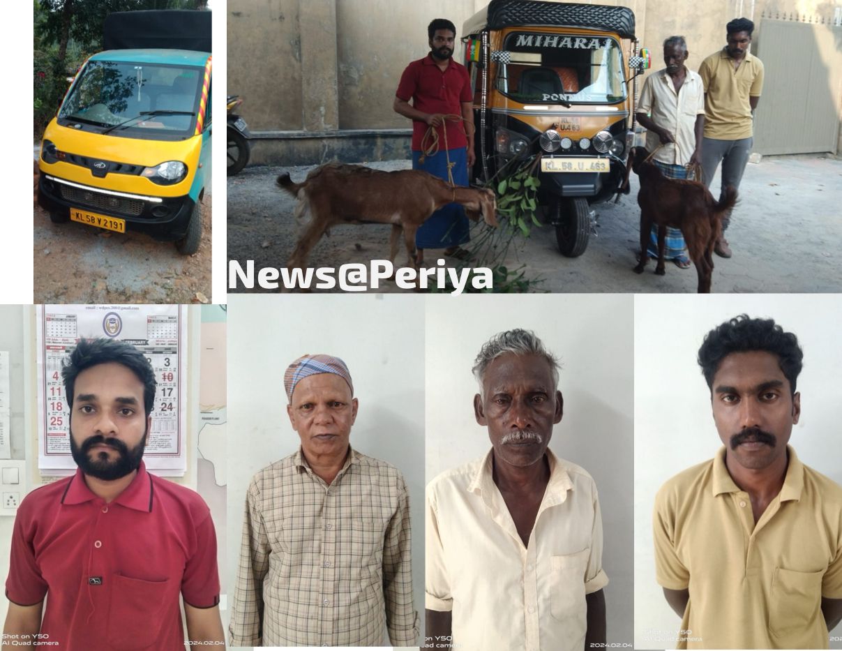 കേളകം അടക്കാത്തോട്. സ്വദേശികളായ സക്കീർ , ബേബി, ജാഫർ , ഇബ്രാഹിം എന്നിവരെയാണ് തലപ്പുഴ പോലീസ് ഇൻസ്പെക്ടർ എസ് അരുൺ ഷായും സംഘവും അറസ്റ്റ് ചെയ്തത്. കഴിഞ്ഞ ഓഗസ്റ്റ് മുതലാണ് സംഘം പേര്യ ഭാഗത്ത് നിന്നും ആടുകളെ മോഷ്ടിക്കാൻ തുടങ്ങിയത്. പരാതിയെ തുടർന്ന് പോലീസ് സിസിടിവി ദൃശ്യങ്ങളും മറ്റും പരിശോധിച്ച് മോഷണത്തിനുപയോഗിച്ച വാഹനങ്ങൾ തിരിച്ചറിഞ്ഞു. ഇക്കാര്യത്തെ പറ്റി സൂചന ലഭിച്ച പ്രതികൾ ഇടനിലക്കാരെ വെച്ച് ഒത്ത് തീർപ്പിനായി ശ്രമം ആരംഭിച്ചു. എന്നാൽ പോലീസ് തന്ത്രപൂർവ്വം ഒത്ത് തീർപ്പിനെന്ന പോലെ വിളിച്ചു വരുത്തി പ്രതികളെ വലയിലാക്കുകയായിരുന്നു. മോഷണത്തിനു പയോഗിച്ച ഓട്ടോറിക്ഷയും, ഗുഡ്സ് വാഹനവും കസ്റ്റഡിയിലെടുത്തു. കുടുംബശ്രീ ലോണിലൂടെയും മറ്റും ജീവിത മാർഗം കണ്ടെത്തുന്നതിനായി ആടുകളെ വാങ്ങി പോറ്റുന്ന സാമ്പത്തികമായി പിന്നാക്കമുള്ള കുടുംബങ്ങളിൽ നിന്നുമാണ് ഇവർ ആടുകളെ മോഷ്ടിച്ചത്. ഇവർ മറ്റിടങ്ങളിൽ നിന്നും മോഷണം നടത്തിയിട്ടുണ്ടോയെന്നുള്ള കാര്യവും മറ്റും പോലീസ് അന്വേഷിച്ച് വരികയാണ്. എസ്.ഐ വിമൽ ചന്ദ്രൻ , എസ് സി പികമാരായ ഏ ആർ സനിൽ, വി കെ രഞ്ജിത്ത്, സി പി ഒ അൽത്താഫ് എന്നിവരും ഉണ്ടായിരുന്നു. കോടതിയിൽ ഹാജരാക്കിയ പ്രതികളെ റിമാണ്ട് ചെയ്തു.