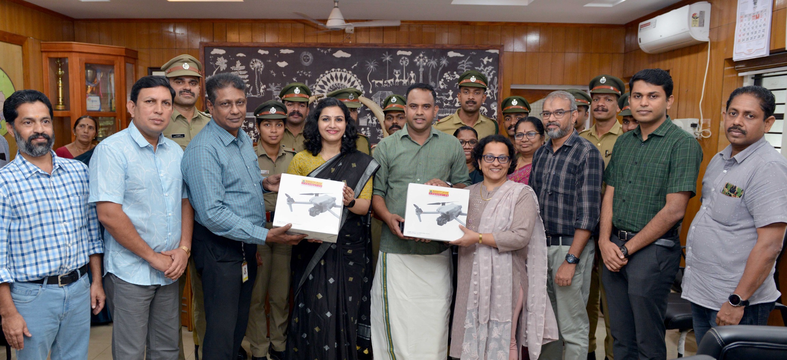 ജില്ലാഭരണകൂടത്തിന്റെ ആഭിമുഖ്യത്തില് സംഘടിപ്പിച്ച വൈഫൈ 2023( വയനാട് ഇനീഷിയേറ്റീവ് ഫോര് ഫ്യൂച്ചര് ഇംപാക്ട് ) ഭാഗമായി മണപ്പുറം ഏജന്സിയുടെ സി.എസ്.ആര് ഫണ്ട് വിനിയോഗിച്ച് വന്യമൃഗങ്ങളുടെ സഞ്ചാരപാത നിരീക്ഷിക്കുന്നതിനായി നല്കിയ രണ്ട് ഡ്രോണുകള് വനം വകുപ്പിന് കൈമാറി. സി.എസ്.ആര് ഫണ്ടില് നിന്നും 3,28,040 രൂപ ചെലവഴിച്ച് വാങ്ങിയ രണ്ട് ഡ്രോണുകളാണ് ജില്ലാ പഞ്ചായത്ത് പ്രസിഡന്റ് സംഷാദ് മരക്കാര്, ജില്ലാ കളക്ടര് ഡോ. രേണു രാജ്, മണപ്പുറം ഏജന്സി സി.ഇ.ഒ ജോര്ജ്ജ് ഡി ദാസ് എന്നിവര് വനം വകുപ്പിന് കൈമാറിയത്. ഡ്രോണ് ഉപയോഗിച്ച് ജനവാസ മേഖലകളില് ഇറങ്ങുന്ന വന്യമൃഗങ്ങളെ നിരീക്ഷിക്കാനും ആളുകള്ക്ക് മുന്നറിയിപ്പ് നല്ക്കാനും സാധിക്കുമെന്ന് ജില്ലാ കളക്ടര് പറഞ്ഞു. ജില്ലാ കളക്ടറുടെ ചേംബറില് നടന്ന പരിപാടിയില് എ.ഡി.എം കെ.ദേവകി, അസിസ്റ്റന്റ് കളക്ടര് എസ്. ഗൗതംരാജ്, ഡെപ്യൂട്ടി കളക്ടര് ഇ.അനിതകുമാരി, ജില്ലാ പ്ലാനിങ് ഓഫീസര് ഇന്-ചാര്ജ്ജ് പി.ആര് രത്നേഷ്, സൗത്ത് വയനാട് ഡി.എഫ്.ഒ അജിത്ത് കെ രാമന്, ഫിനാന്സ് ഓഫീസര് സാബു, മണപ്പുറം ഫൗണ്ടേഷന് ഹെഡ് പ്രൊജക്ട് ഇംപ്ലിമെന്റേഷന് ശില്പ ട്രീസ സെബാസ്റ്റ്യന്, അസിസ്റ്റന്റ് ജില്ലാ പ്ലാനിങ് ഓഫീസര് സി.പി സുധീഷ് എന്നിവര് സംസാരിച്ചു.