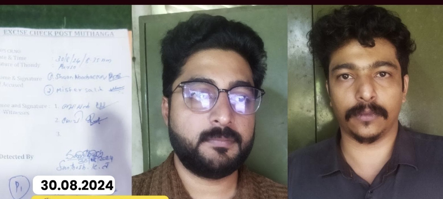 മുത്തങ്ങ-: ഓണം സ്പെഷ്യൽ ഡ്രൈവിന്റെ ഭാഗമായി മുത്തങ്ങ എക്സൈസ് ചെക്ക് പോസ്റ്റിൽ നടത്തിയ വാഹന പരിശോധനയിൽ ബാംഗ്ലൂരിൽ നിന്ന് കോഴിക്കോട്ടേക്ക് വരികയായിരുന്ന KL11CA 0065 നമ്പർ സ്വിഫ്റ്റ് കാറിൽ നിന്നും1.880 ഗ്രാം മെത്താഫിറ്റമിൻ പിടികൂടി സംഭവവുമായി ബന്ധപ്പെട്ട് കോഴിക്കോട് സ്വദേശികളായ ഷാൻ അബൂബക്കർ(വയസ്സ് 29), കോഴിക്കോട് ബേപ്പൂർ നെടുങ്ങോട്ടുശ്ശേരി പറമ്പ് ഭാഗത്ത് ലുബ്നാ വീട്ടിൽ മിസ്ഫർ സാലിഹ് (വയസ്സ് 32) എന്നിവരെ അറസ്റ്റ് ചെയ്തു. മയക്കുമരുന്ന് കടത്താൻ ഉപയോഗിച്ച കാറും കസ്റ്റഡിയിലെടുത്തു.