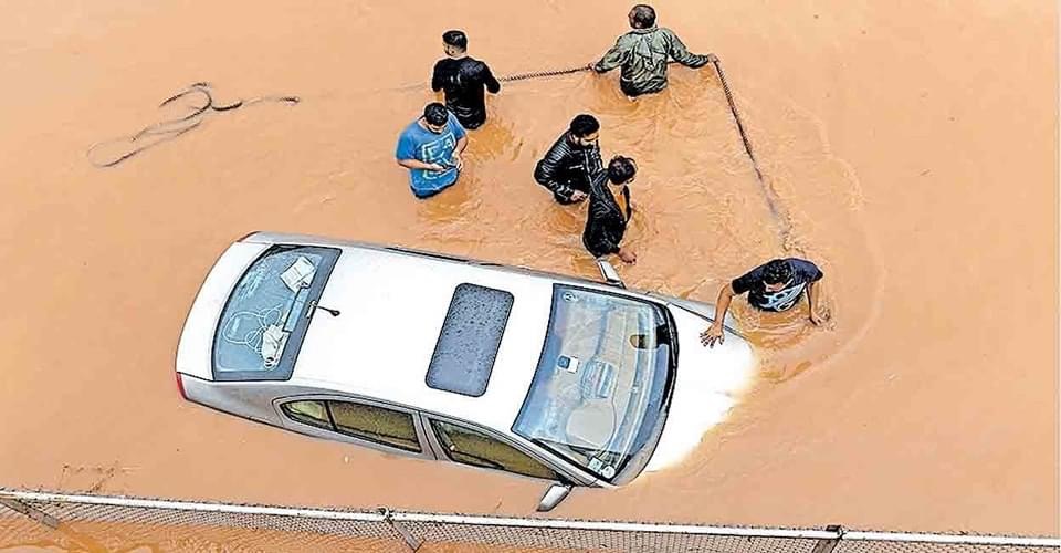 വെള്ളക്കെട്ടിൽ കുടുങ്ങിയ ബസിൽനിന്ന് എമർജൻസി ഡോർ വഴിയാണ് സ്ത്രീകളും കുട്ടികളുമടക്കമുള്ള 50 ഓളം യാത്രികരെ രക്ഷപ്പെടുത്തിയത്.